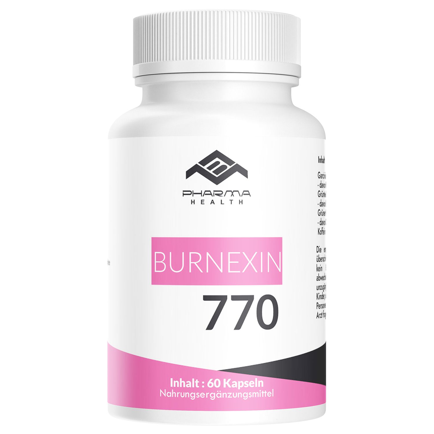 Burnexin 770 enthält eine Mischung aus hochwertigen natürlichen Pflanzenextrakten und ausgewählten Nährstoffen, die für ihre positiven Eigenschaften im Bereich des Stoffwechsels bekannt sind. Die genaue Zusammensetzung finden Sie auf der Produktverpackung oder der detaillierten Produktseite.